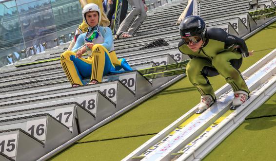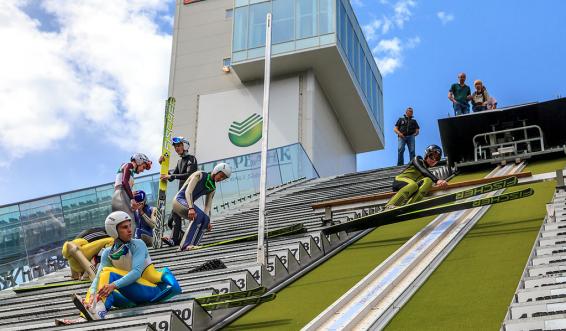 The first to start were the representatives of the male ‘flying’ skiers: Denis Kornilov, Ilya Roslyakov, Dmitry Vasilyev, Aleksey Romashov, Aleksandr Sardyko, Ilmir Khazetdinov, Mikhail Maksimochkin, Vladislav Boyarintsev and Dmitrii Ipatov. All of them have got numerous titles and records under their belts, which was a kind of let-pass for them to enter the Olympic team. In the near future the ‘flying’ skiers will train on the smaller K-95 ski-jump complex. They are trained by professional trainers: Aleksandr Arefyev, Sergey Zubkov, Evgeny Plekhov.