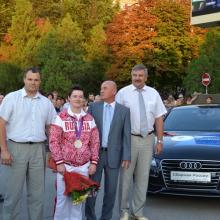 Торжественная церемония награждения состоялась на площади «Юбилейная», где спортсменку приветствовали глава и жители города, представители творческой и спортивной общественности, представители СМИ.