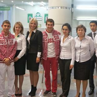 Сотрудники а поздравили олимпийцев с началом сотрудничества, а Андрей Марков, первый заместитель управляющего Саратовского отделения № 8622, пожелал спортсменам новых достижений.