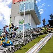 Комплекс «Русские горки» – один из представителей «нового поколения» всесезонных трамплинов, где благодаря специальному покрытию можно проводить тренировки и соревнования в течение всего года. Вместе с тем, признаются спортсмены, к таким трамплинам нужно привыкать.