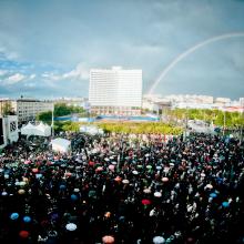 Следующими на сцену поднялись музыканты украинского коллектива «Бумбокс». Площадь Пяти Углов встречала каждую песню «на ура». Выступлению группы не помешал небольшой дождь, который через несколько минут сменился яркой радугой. Фронтмен группы Андрей Хлывнюк жизнерадостно заметил, что это очень хороший знак.